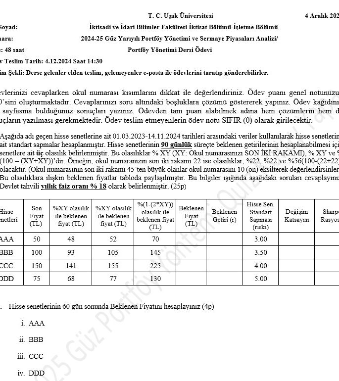 Teslim Tarihi: 4 Aralık 2024 Çarşamba günü