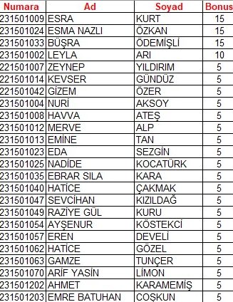 2 Nisan 2026 Perşembe günü gerçekleştirilen Vize Sınavına aşağıdaki tabloda yer alan ders performansı ek puan olarak eklenmiştir.